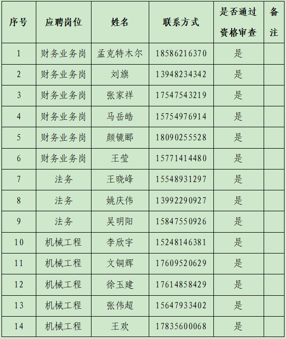 根據(jù)我公司招聘工作安排,現(xiàn)已完成應(yīng)聘人員的資格審查工作?,F(xiàn)將資格審查結(jié)果予以公告(具體情況見(jiàn)下表)。