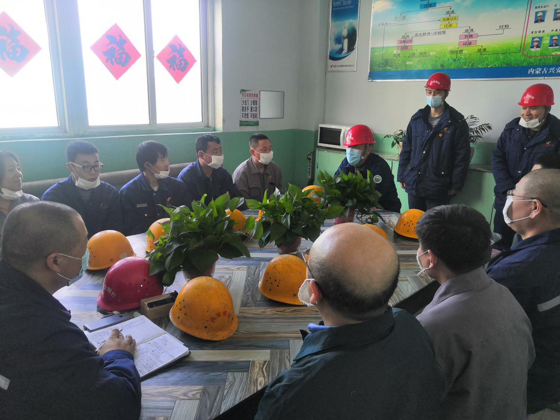 2021年2月12日農(nóng)歷辛丑年大年初一,董事長(zhǎng)來(lái)到了熔煉分廠氧化鋅車間浸出丁班,督導(dǎo)檢查該班組班前會(huì)的召開(kāi)工作。會(huì)議開(kāi)始董事長(zhǎng)首先向節(jié)日期間堅(jiān)守在一線的全體員工致以了節(jié)日的問(wèn)候,隨后,會(huì)議由班長(zhǎng)孫成林主持,會(huì)議進(jìn)行了點(diǎn)名、崗位安全操作規(guī)程陳述、布置當(dāng)班工作任務(wù)、強(qiáng)調(diào)各崗位安全注意事項(xiàng)等內(nèi)容,最后班組人員集體宣誓:為了自己、為了家庭、為了公司,相互提醒、遵章作業(yè),本質(zhì)安全、珍愛(ài)生命!