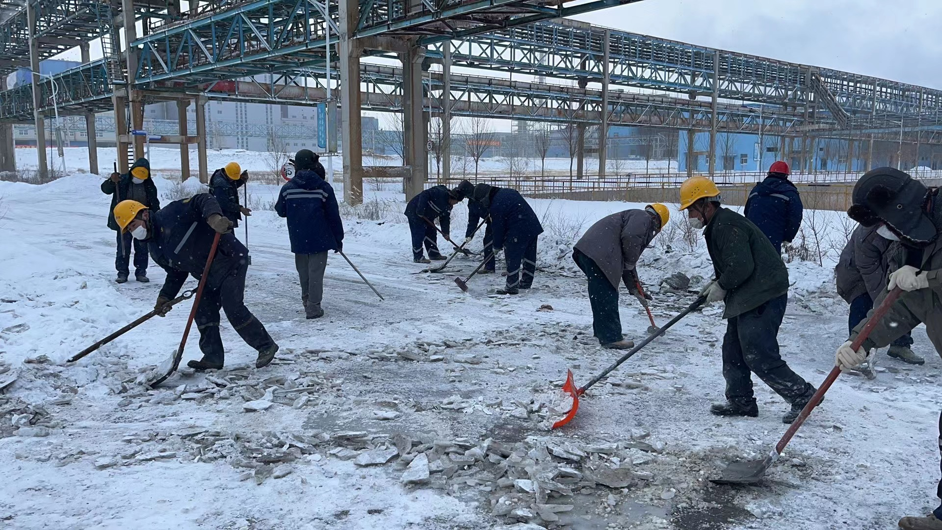 聞雪而動(dòng),全員齊上陣。煉鋅分廠按照公司黨委組織開展的“提標(biāo)、提速、提效”專項(xiàng)行動(dòng)部署要求,充分發(fā)揚(yáng)公司優(yōu)良傳統(tǒng),立即組織分廠人員開展保暢通、保安全、護(hù)穩(wěn)定的清理行動(dòng)。行動(dòng)中,大家不畏寒風(fēng),分工有序清雪除冰、消除隱患。在全體工作人員的共同努力下,白色的雪地中開辟出了一條條道路,用實(shí)際行動(dòng)為員工的安全出行筑起一道安全、溫暖的屏障。